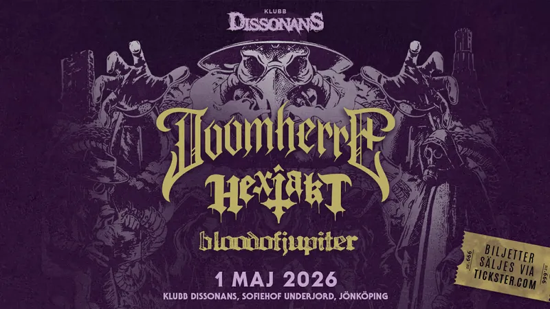 Doomherre, Hexjakt, and BloodofJupiter present an evening of heavy live music at Sofiehof Underjord in Jönköping. Expect a musical journey exploring u...