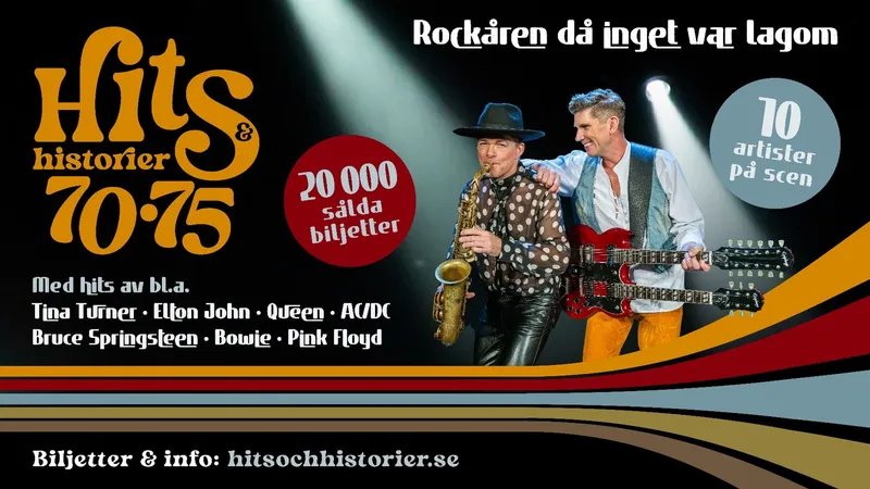 Hits & Historier 70–75 tar dig med på en musikalisk resa tillbaka till de gyllene åren 1970–1975 med ett 10-mannaband. Föreställningen hyllar ikoniska...