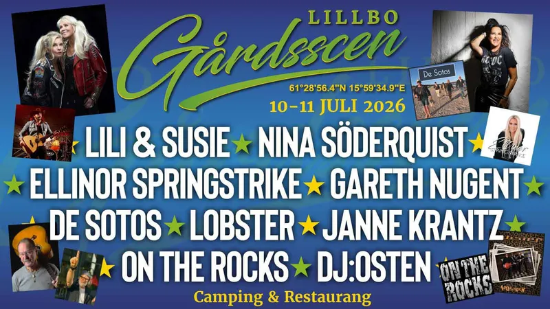 Lillbo Gårdsscen 2026 bjuder in till två dagar fyllda av musik, mat och gemenskap i Alfta. För den som vill stanna längre finns möjlighet till camping...